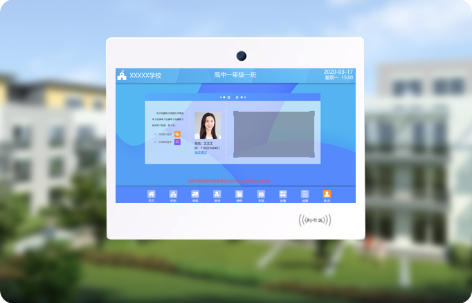 電子班牌可以準確對比學生身份,人臉識別率可達到99.9%。
